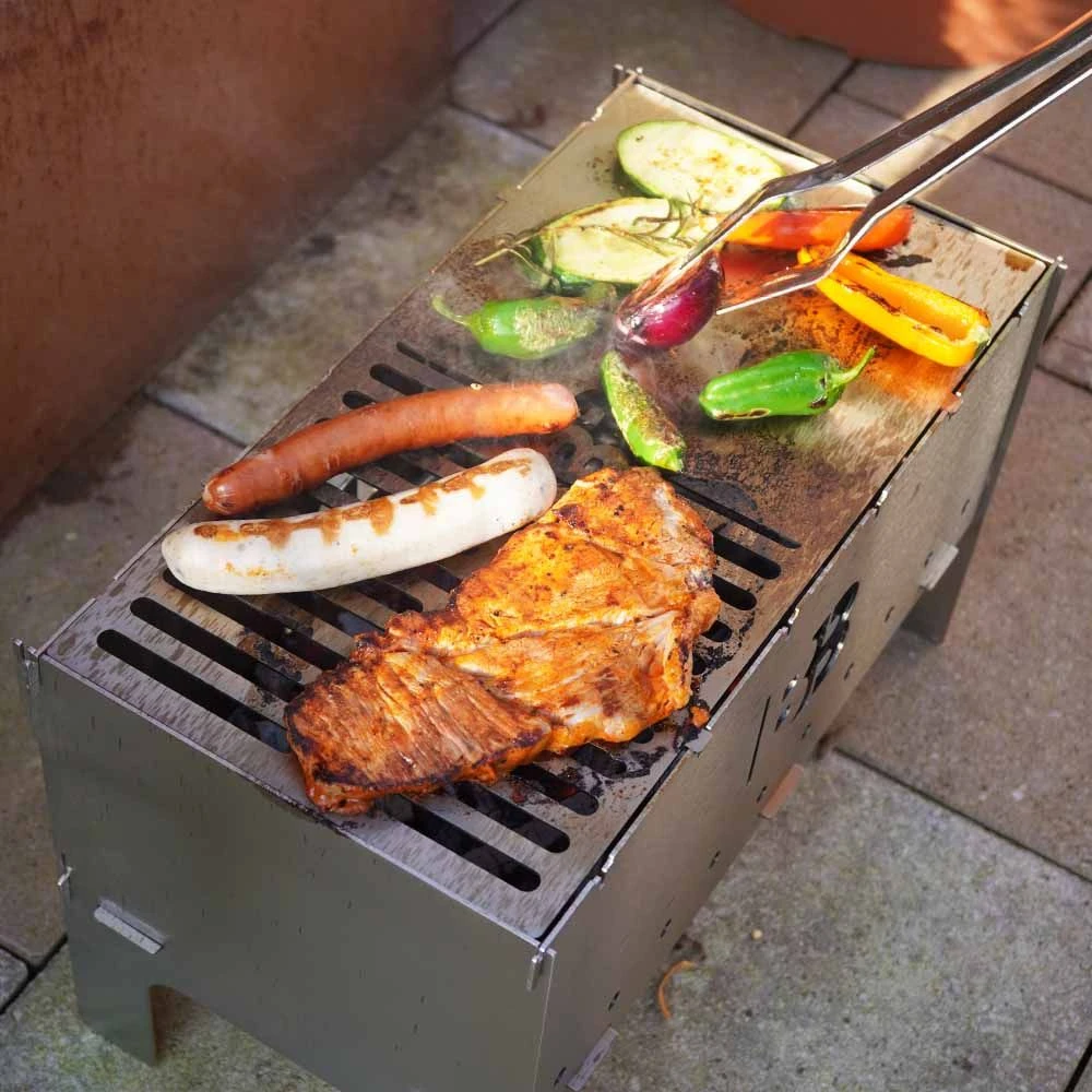 Passend zur BlazeBox Station Medium können Sie unsere Kombi-Grillplatte aus 100 % poliertem Edelstahl verwenden. Verwandeln Sie jeden Ausflug zur Grillparty. Sie können auf dem integrierten Rost Steaks und Würstchen grillen und gleichzeitig, auf der Platte, z. B. Pfannkuchen oder Rühreier zubereiten. Ihrer Kreativität sind keine Grenzen gesetzt. Unsere BlazeBox ist genau das Richtige für alle Festival-Freunde, Camper und jeden Ausflug, denn sie ist langlebig, stabil, hochwertig und vor allem 100 % nachhaltig. Auch bei häufigem Auf- und Abbau hat sie eine lange Lebensdauer und ist durch die einfache Handhabung schnell und einfach aufgebaut. Dank unserer eigenen Produktion in unserem Werk am Niederrhein können wir den hohen Qualitätsansprüchen von uns und unseren Kunden gerecht werden.