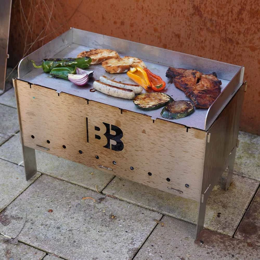Passend zur BlazeBox Station Mini können Sie unsere Plancha aus 100 % poliertem Edelstahl verwenden. Verwandeln Sie jeden Ausflug zur Grillparty. Unsere BlazeBox ist genau das Richtige für alle Festival-Freunde, Camper und jeden Ausflug, denn sie ist langlebig, stabil, hochwertig und vor allem 100 % nachhaltig. Auch bei häufigem Auf- und Abbau hat sie eine lange Lebensdauer und ist durch die einfache Handhabung schnell und einfach aufgebaut. Dank unserer eigenen Produktion in unserem Werk am Niederrhein können wir den hohen Qualitätsansprüchen von uns und unseren Kunden gerecht werden.