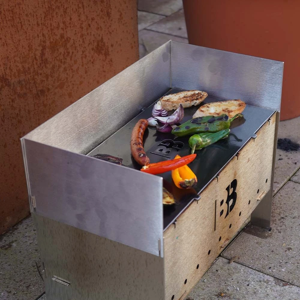 Passend zur BlazeBox Station Mini können Sie unseren steckbaren Windschutz aus 100 % poliertem Edelstahl verwenden. Verwandeln Sie jeden Ausflug zur Grillparty. Unsere BlazeBox ist genau das Richtige für alle Festival-Freunde, Camper und jeden Ausflug, denn sie ist langlebig, stabil, hochwertig und vor allem 100 % nachhaltig. Auch bei häufigem Auf- und Abbau hat sie eine lange Lebensdauer und ist durch die einfache Handhabung schnell und einfach aufgebaut. Dank unserer eigenen Produktion in unserem Werk am Niederrhein können wir den hohen Qualitätsansprüchen von uns und unseren Kunden gerecht werden.