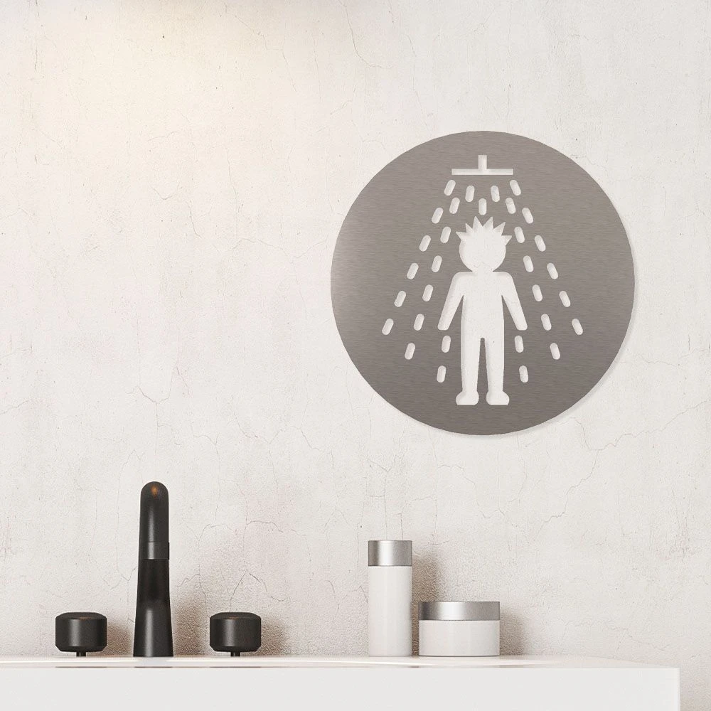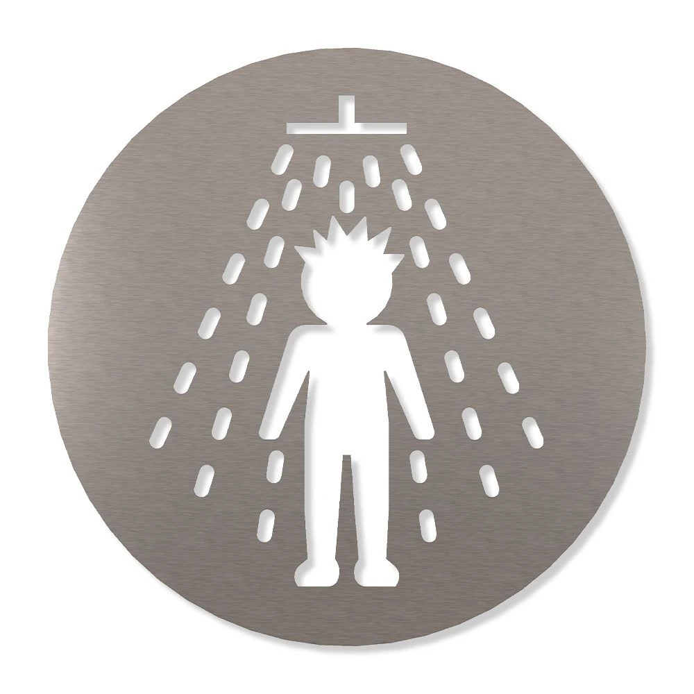 Mit dem Piktogramm „Dusche Herren“ erhalten Sie ein elegantes Schild für die einfache Anbringung an Türen und Wänden, z. B. zur Kennzeichnung von Sanitärräumen im Büro, in Geschäften, in Hotels oder in öffentlichen Gebäuden. Unsere Piktogramme werden in Handarbeit aus hochwertigem Edelstahl gefertigt und sind langlebig und robust.