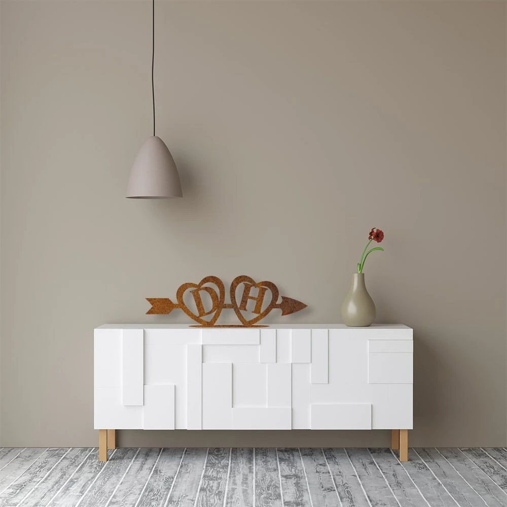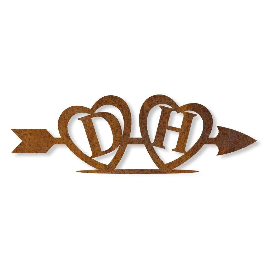 Mit dem Edelrost Liebespfeil mit Ihren Initialen setzen Sie Highlights in Garten, Terrasse und in Ihrem Heim. Ob für Sie selber oder als Geschenk – Aufsteller in Rostoptik sind die ideale Ergänzung für Ihre dekorative Gestaltung. Sie haben die Möglichkeit 2 Zeichen zu platzieren. Geben Sie einfach Ihre Wunschzeichen in das Textfeld ein.