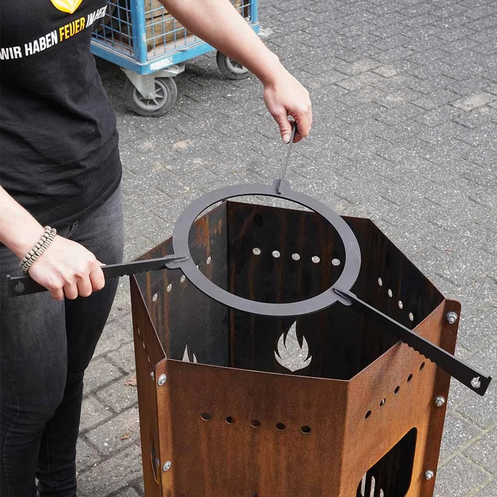 - Passend für gängige Feuertonnen, runde Feuerschalen und -körbe sowie Kugelgrills