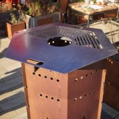 Feuerplatte Grillplatte Mit Integriertem Rost 6-eckig Ø 98 Cm Design 4
