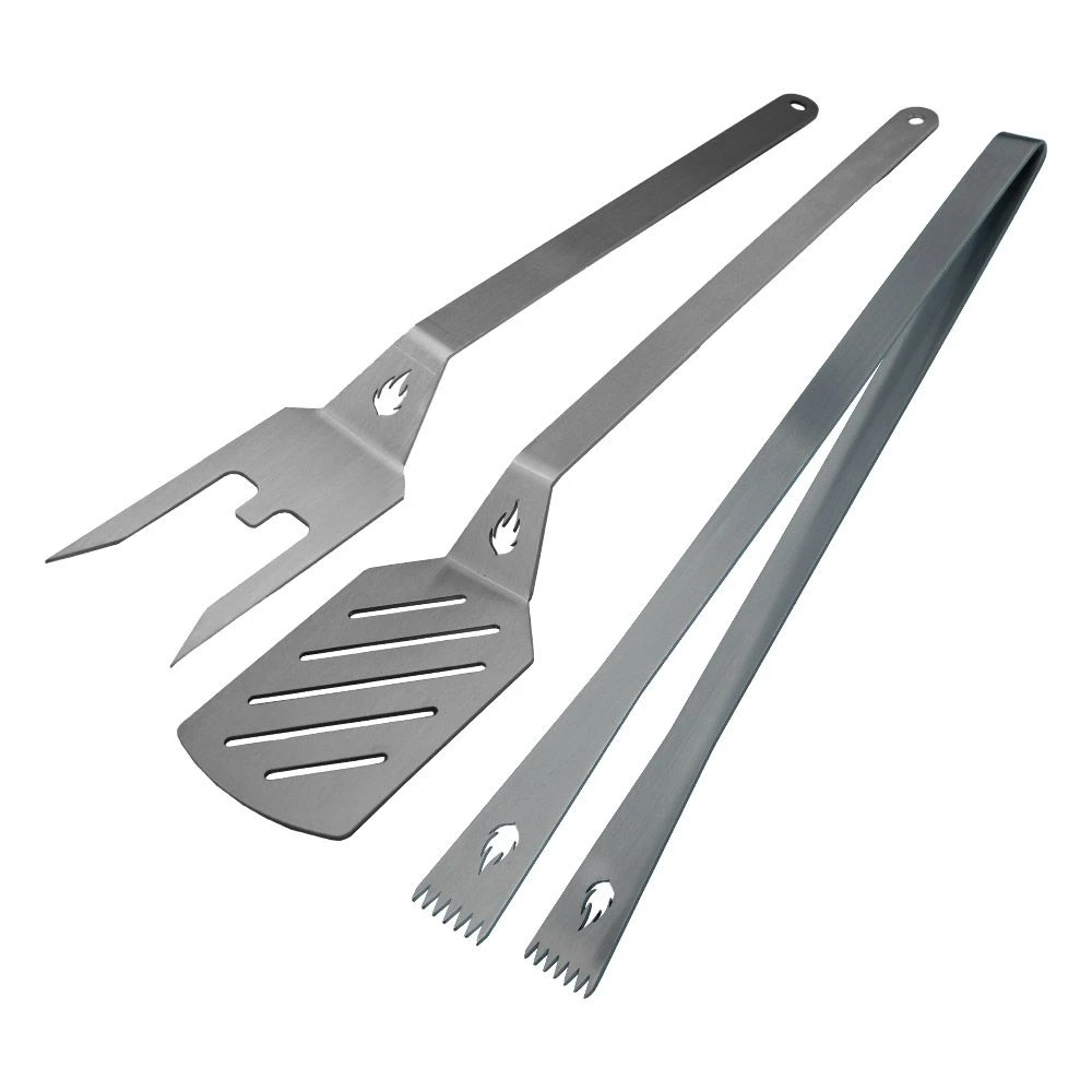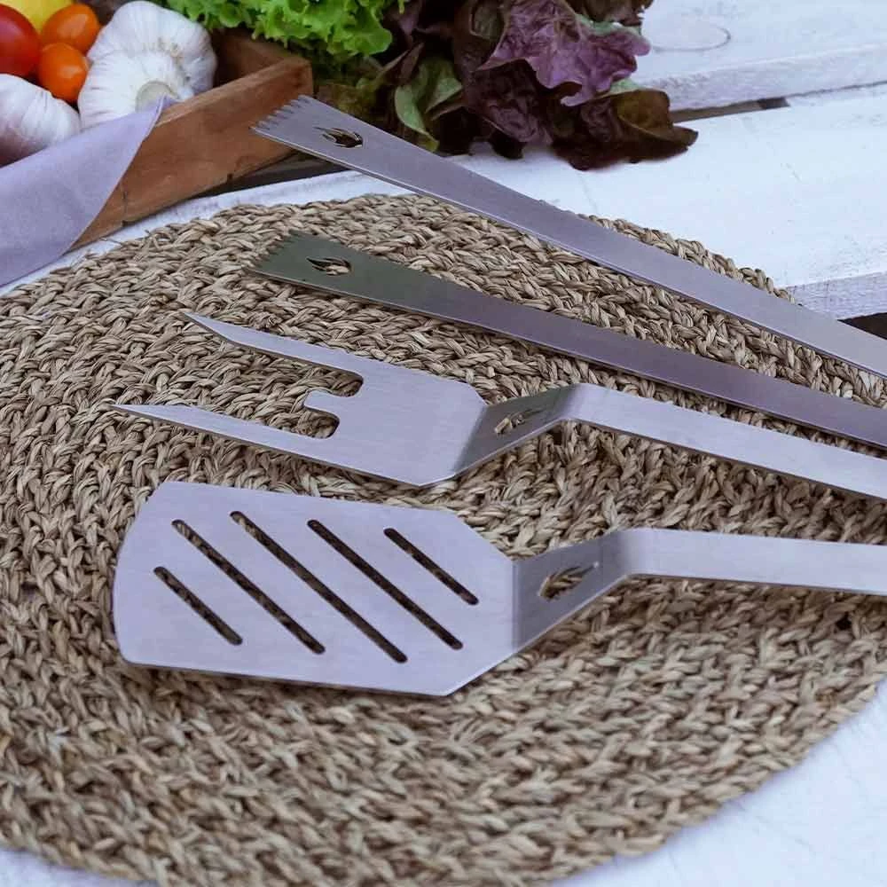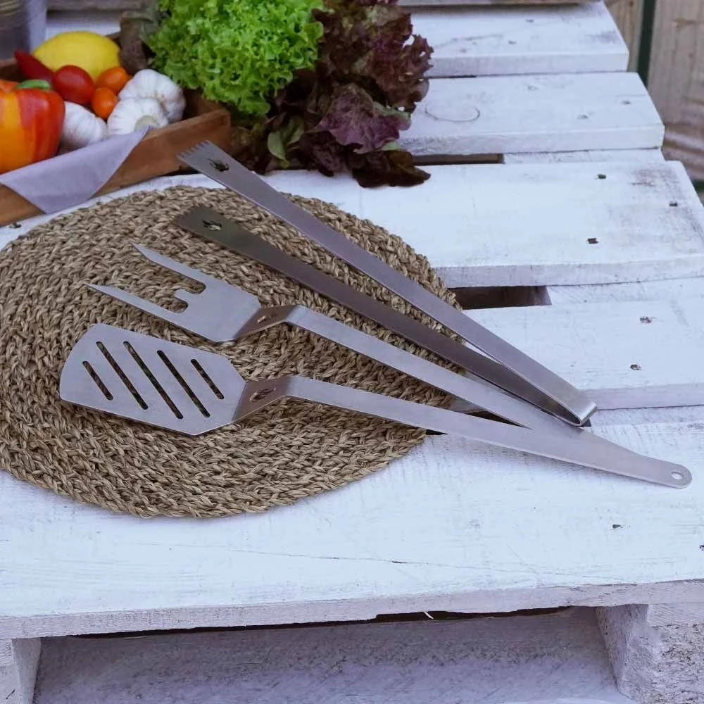 Mit unserem Grillbesteck sind Sie perfekt ausgerüstet für die Grillsaison. – Das Grillbesteck besteht zu 100 % aus hochwertigem Edelstahl und kann für Gas- und Kohlgrills oder Pizzaöfen eingesetzt werden. Unser Grillbesteck ist lebensmittelecht und spülmaschinengeeignet.