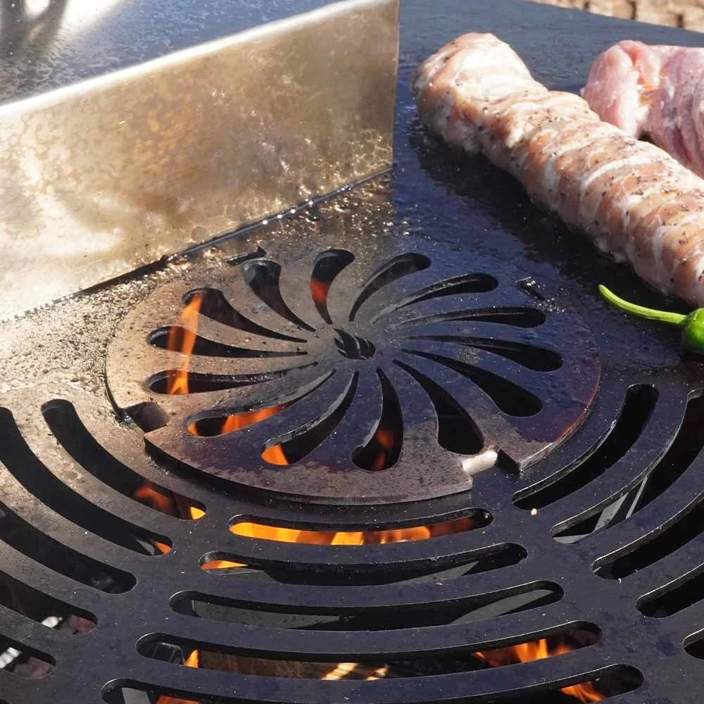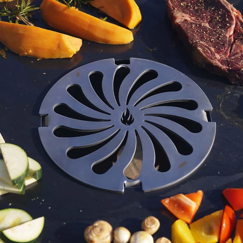 Der Grillrost ist dafür geeignet, in die Mitte einer Feuerplatte mit Ø 20 cm eingelegt zu werden. Erhalten Sie ein tolles Branding! Zudem schützt der Grillrost-Einsatz davor, dass das Grillgut durch das Loch der Feuerplatte in die Flammen fällt. Alternativ können Sie den Grillrost auch in den Grillrost- / Spiess-Ständer einsetzen.