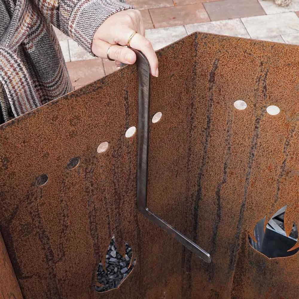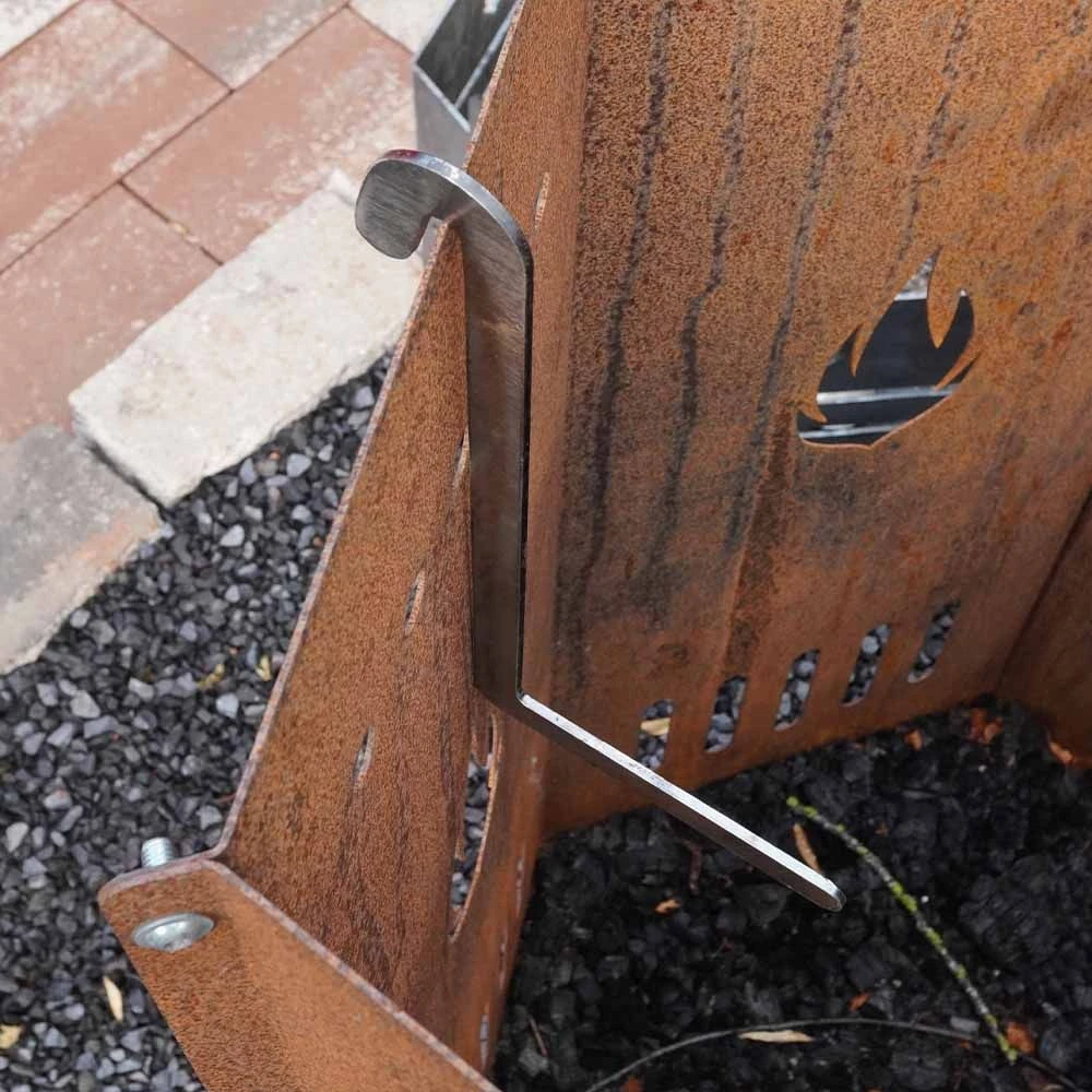Unsere Haken im 3er Set sind aus massivem Stahl gefertigt. Die Haken werden an der oberen Kante der Feuertonne eingehängt und dienen als Feuererhöhung.