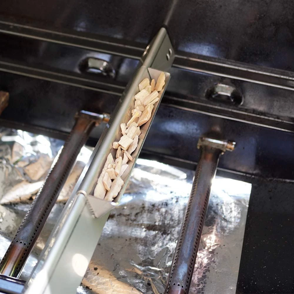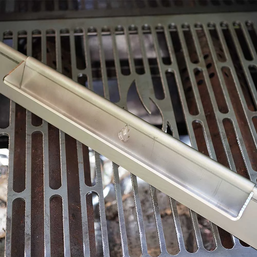 Räucherschiene für Gasgrills mit Aromaschiene. Einfach auf die Aromaschiene auflegen, befüllen und mit Räucherchips befüllen. Die Rauchintensität lässt sich durch die Stärke der Flammen steuern. Ideal zur Ergänzung Ihres Gasgrills.