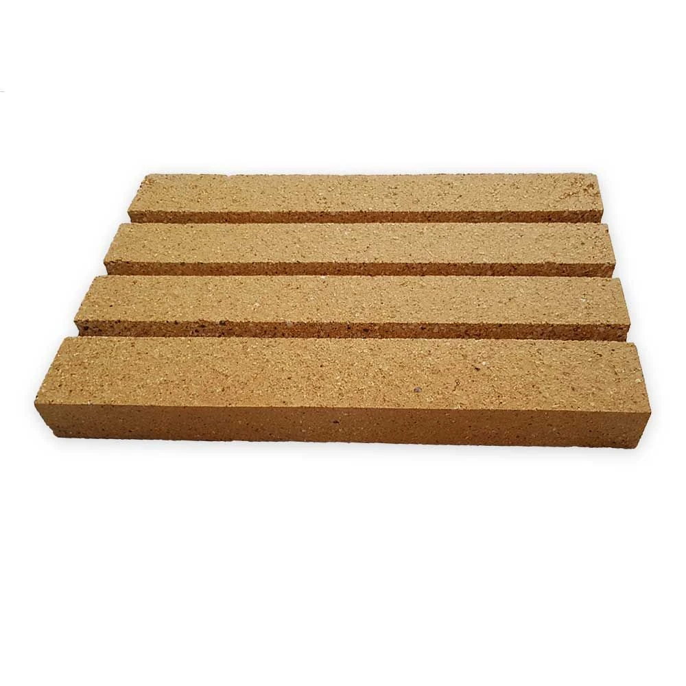 Unsere Rillenplatte 300x200x30mm „PUR Schamotte“ mit 3 Rillen aus hochwertiger Schamotte ist für den Bau von Grillplätzen, Gartenkaminen sowie Grillkaminen vorgesehen. Wir bieten Schamotteplatten und – steine mit Rillen als Einschub für das Grillrost in vielen Größen und Varianten an. Die Rillen haben eine Tiefe und Breite von ca. 10mm und erstrecken sich über die gesamte Länge der Rillenplatte.