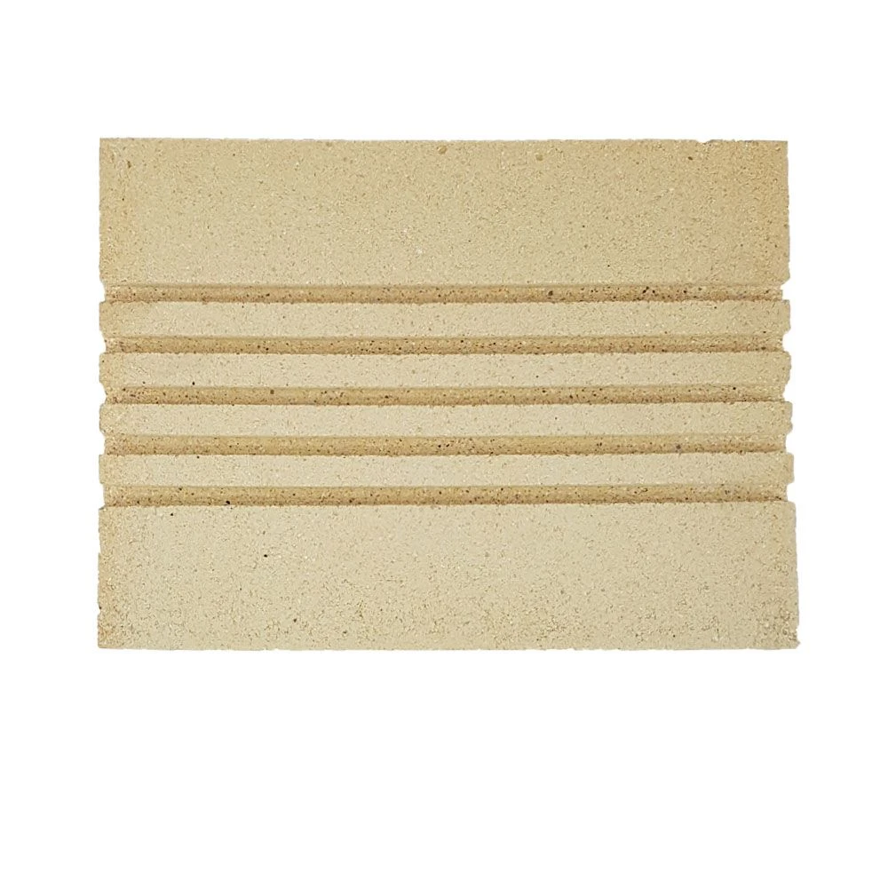 Unsere Rillenplatte 400x300x30mm „PUR Schamotte“ mit 5 Rillen aus hochwertiger Schamotte ist für den Bau von Grillplätzen, Gartenkaminen sowie Grillkaminen vorgesehen. Wir bieten Schamotteplatten und – steine mit Rillen als Einschub für das Grillrost in vielen Größen und Varianten an. Die Rillen haben eine Tiefe und Breite von ca. 10mm und erstrecken sich über die gesamte Länge der Rillenplatte.